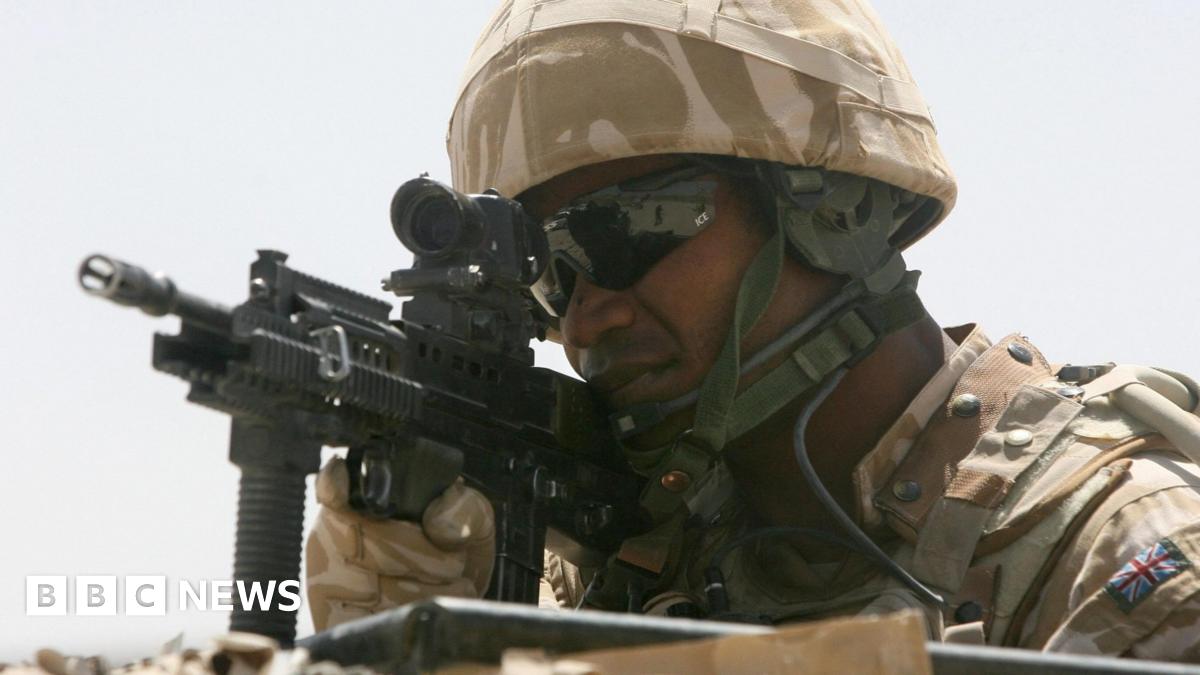 A British soldier looking through a gun sightImage source, PA