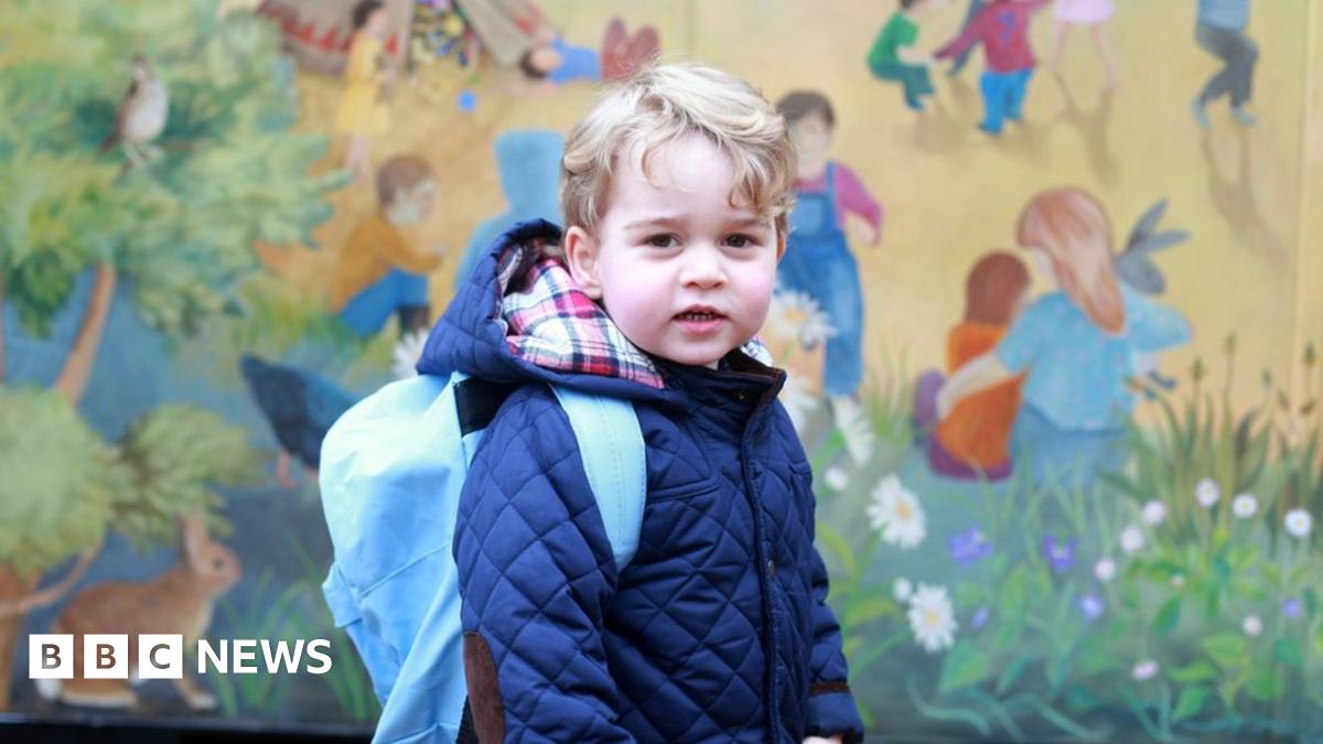 In a picture taken by his mother, Prince George on his first day of nursery school near Sandringham in Norfolk