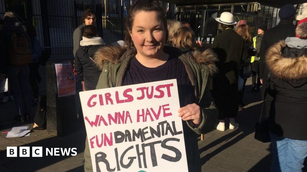 "Girls just wanna have fundamental rights", "Women won't be trumped" and "Burn bras not bridges" were some of the messages directed at US President Donald Trump from the UK.