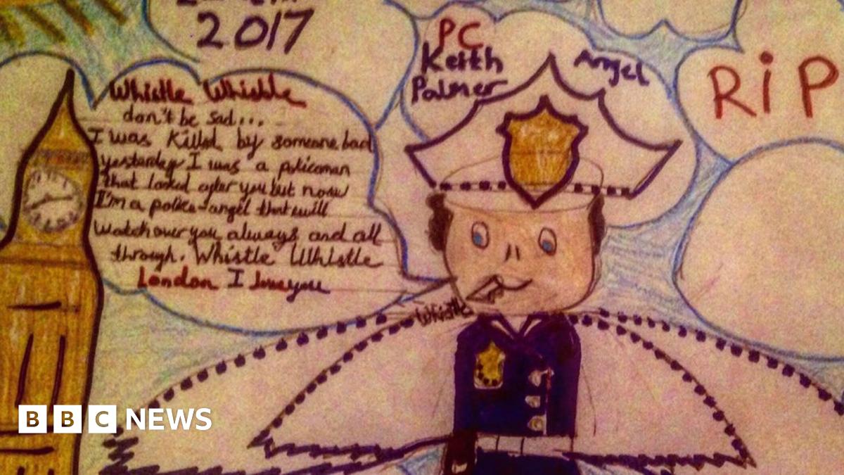Hetty from Kent thanked the police for their work in a letter and Zane from Oxfordshire drew a picture of PC Keith Palmer as a "police angel" after the officer was murdered on Wednesday.