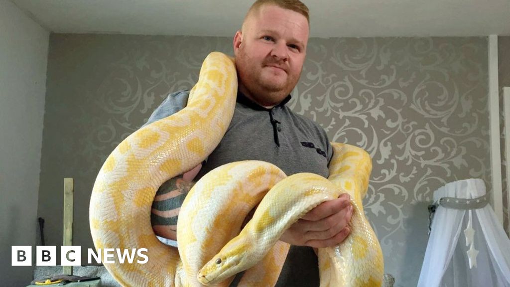 Mobile zoo owner Scott Gavin uses snakes and a raccoon dog at parties