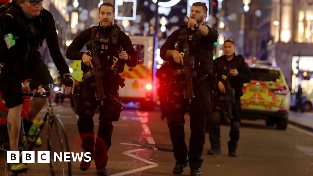 Oxford Circus - where Oxford Street and Regent Street meet - was cordoned off, while shops and businesses were placed in lockdown.