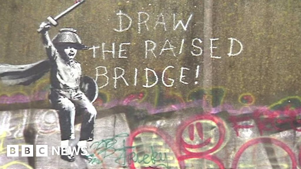 Hundreds of people have been turning up to see a work by the world-famous graffiti artist Banksy, on a disused bridge in Hull.