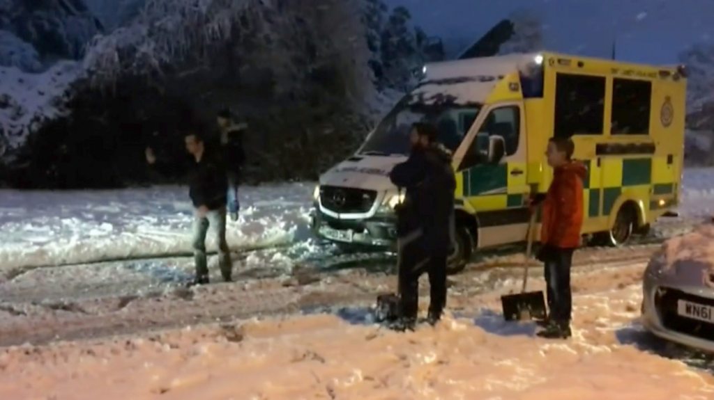 Ambulance rescued on snowy road
