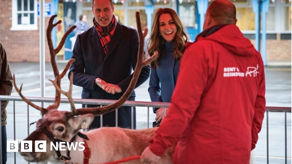 Kensington PalaceThe Duke and Duchess of Cambridge have surprised schoolchildren with a visit from reindeer during a three-day train tour of Great Britain.