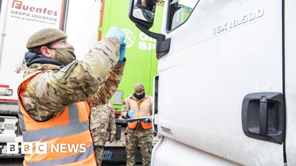 Ministry of Defence/Crown CopyrightMore than 20 new coronavirus testing centres for hauliers driving to France are being set up in the next few days, the transport secretary has announced.