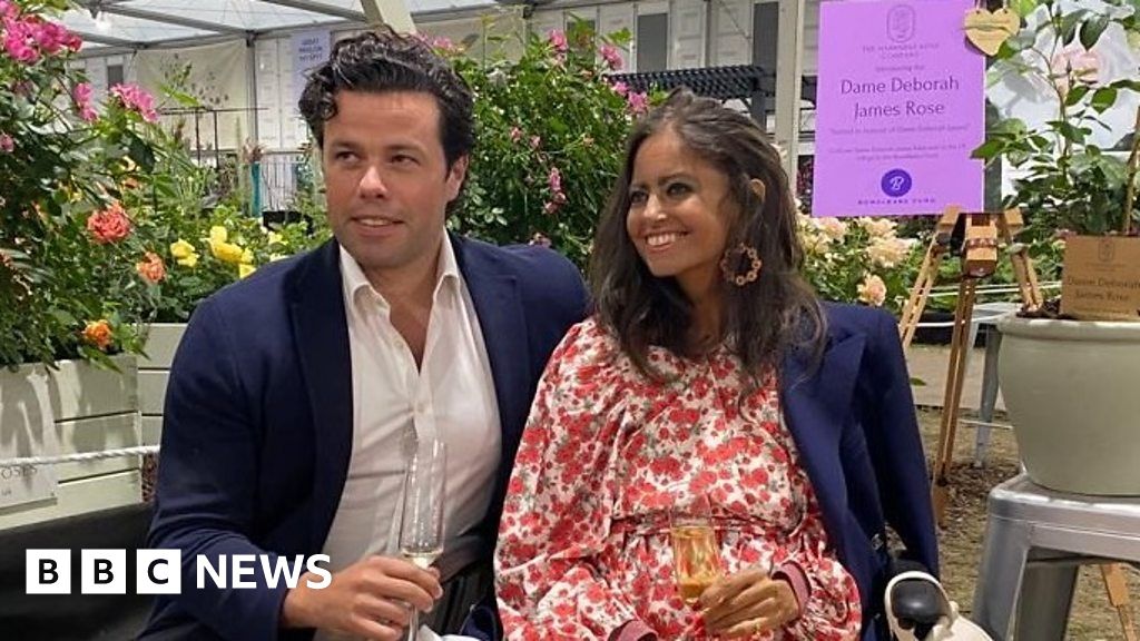 Podcast host Dame Deborah James was greeted with a glass of bubbly as she visited the Chelsea flower show, to see the rose that has been named after her.