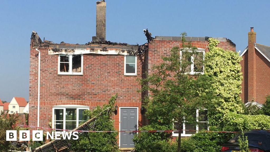 BBCThe roof of a house was completely destroyed when it was struck by lightning and engulfed by flames.
