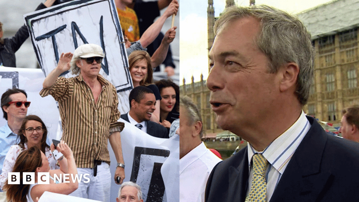 But his Brexit armada was greeted by a rival Remain fleet carrying Mr Geldof.