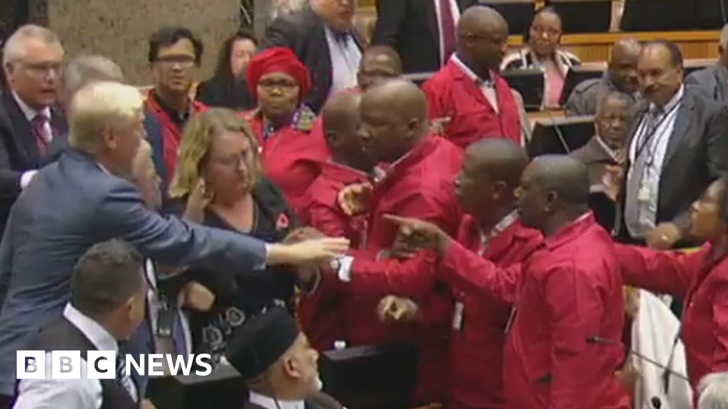 In parliament on Tuesday, the chief whip of the main opposition Democratic Alliance (DA), John Steenhuisen, accused members EFF members of being "VBS looters". EFF lawmakers reacted angrily, calling him a "white racist". A brawl quickly followed.