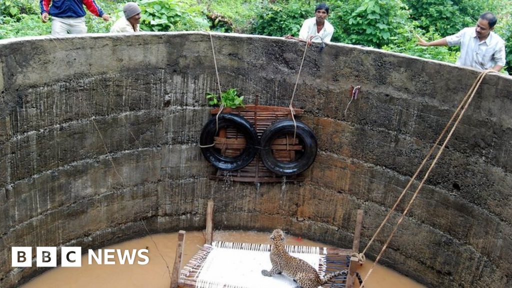 So with the villagers' help, the officers lowered a wooden plank with two large tyres tied to it into the well. Once the leopard stepped on to the plank, some of them held it steady while the others went looking for a "charpoy", a sturdy woven bed on wooden legs.