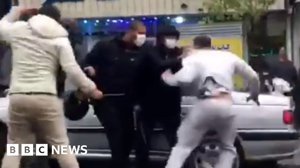 In a third. taken from inside a moving car in the capital, Tehran, a woman can be heard screaming as plainclothes security personnel or militiamen detain a man.