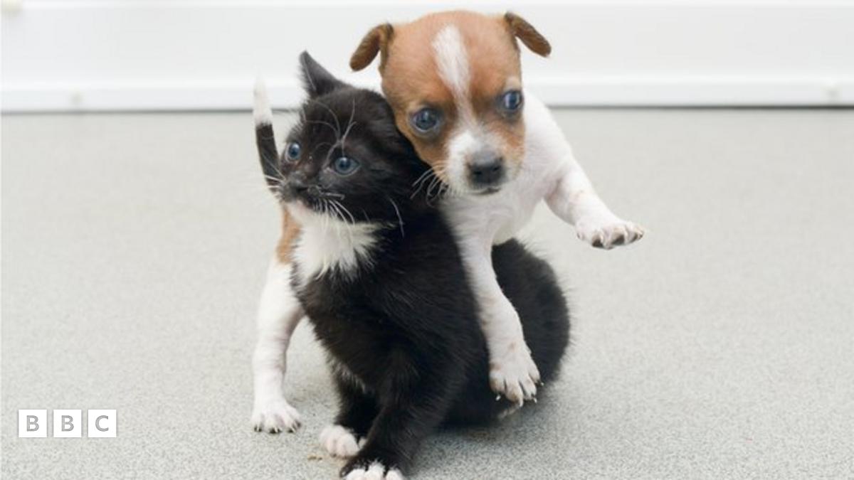 It's unusual for a cat and dog to bond but staff at the home decided to try and raise them together because they were both so young.