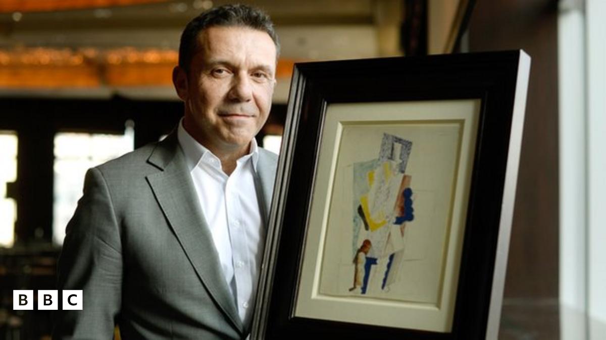 Olivier Picasso, shown in the picture with the painting called L'Homme au Gibus (Man with Opera Hat) helped to promote the raffle.