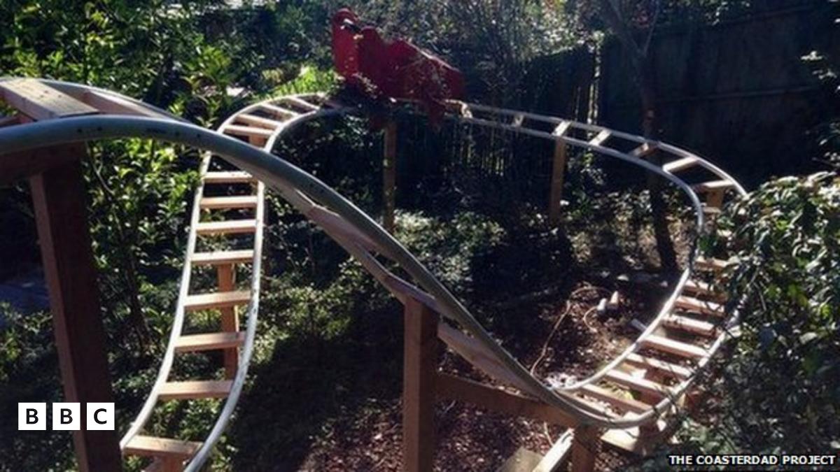 This rollercoaster is in 10-year-old Lyle Pemble's backyard. He helped his dad design and build it.