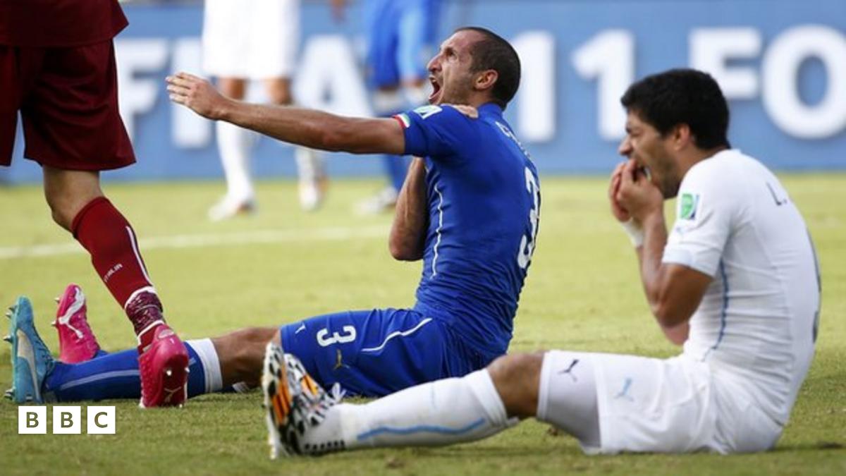 Watch the moment Luis Suarez appears to bite Giorgio Chiellini