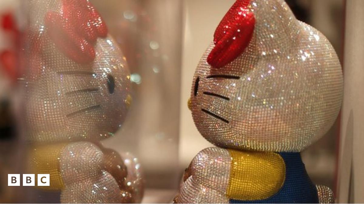 The exhibit looks at Hello Kitty over the years and includes many items such as toy aircrafts and cups.