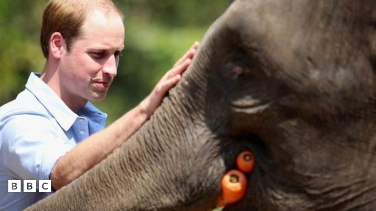 The Duke of Cambridge fed Ran Ran, a 13-year-old rescued female Asian elephant who has recovered from being injured by a trap