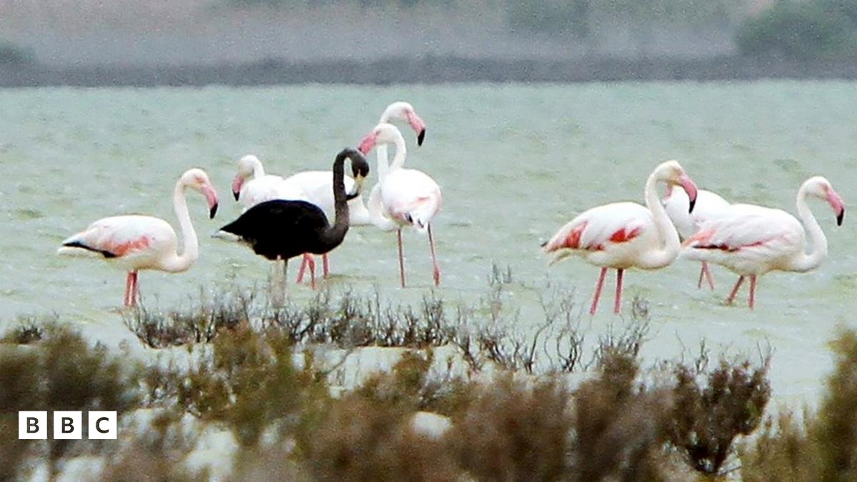 Rare black flamingo in Cyprus wows birdwatchers