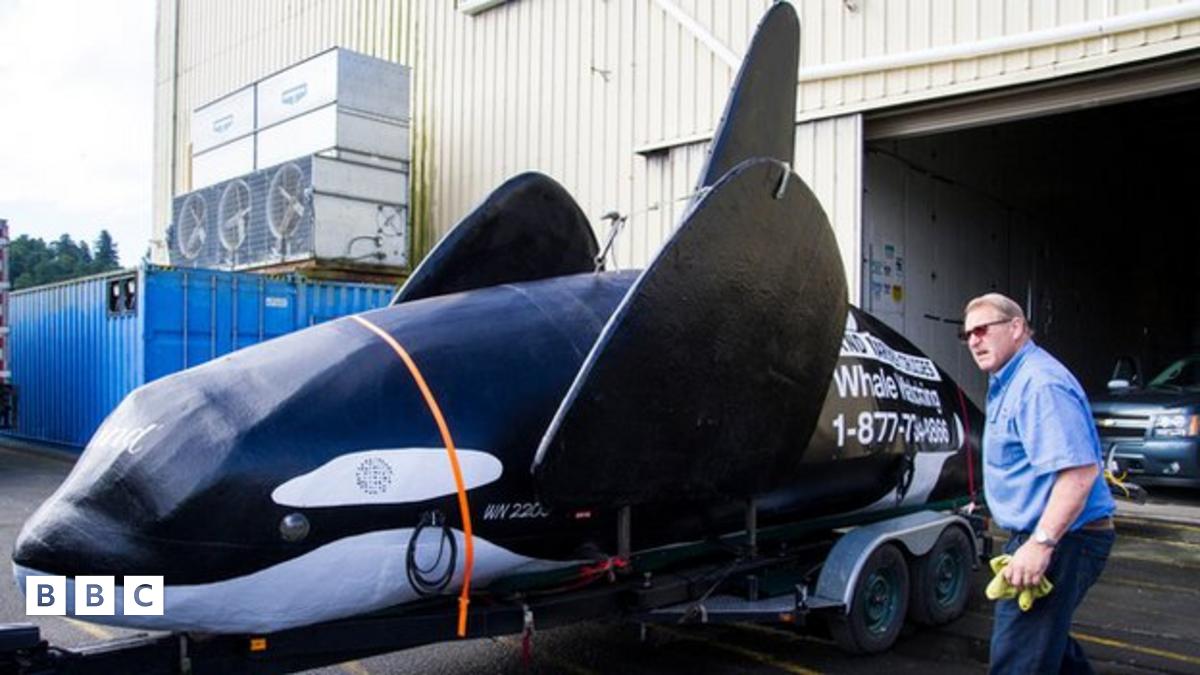 But harbour officials came up with a plan to help scare them away. They used a giant fake orca whale which is almost ten metres long.