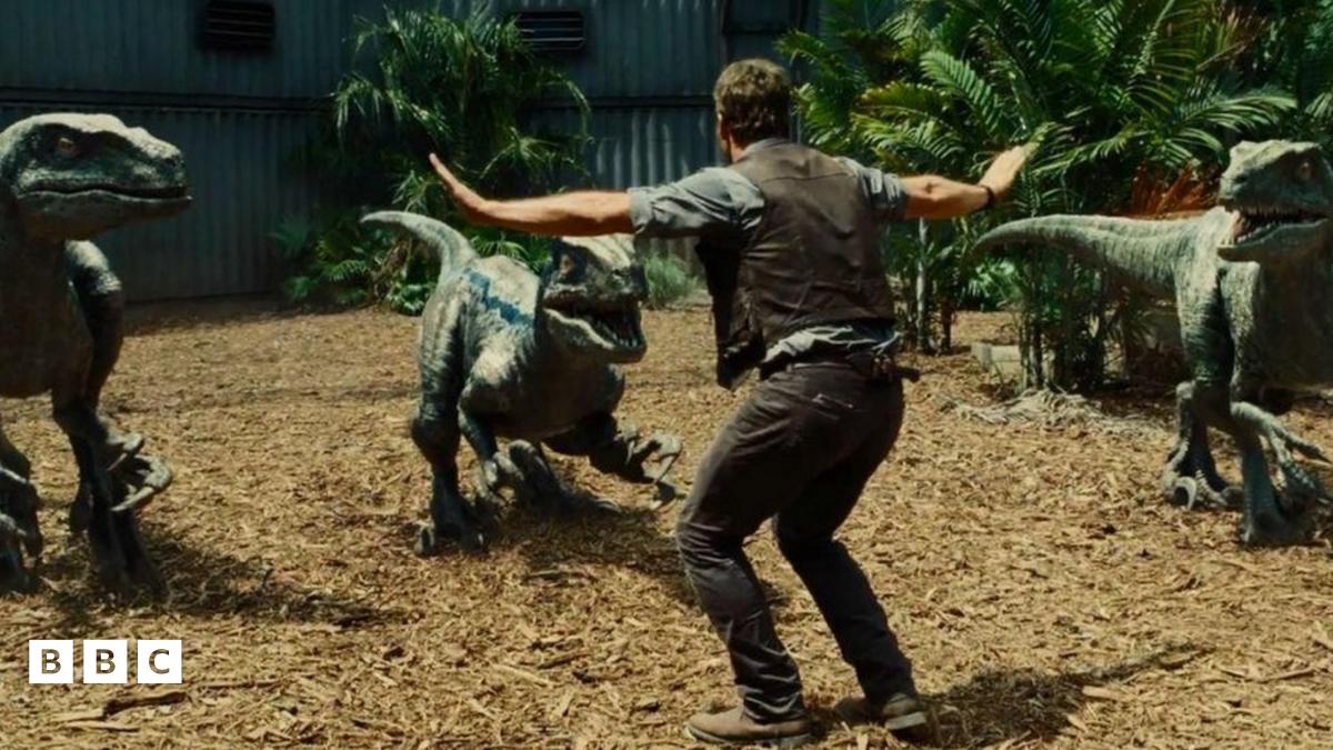 In the film a 'dinosaur researcher' confronts a group of velociraptors and calms them down using his arms.