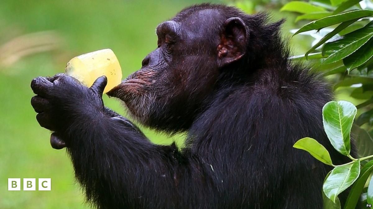 While a chimpanzee at Chester Zoo cooled down with an ice lolly