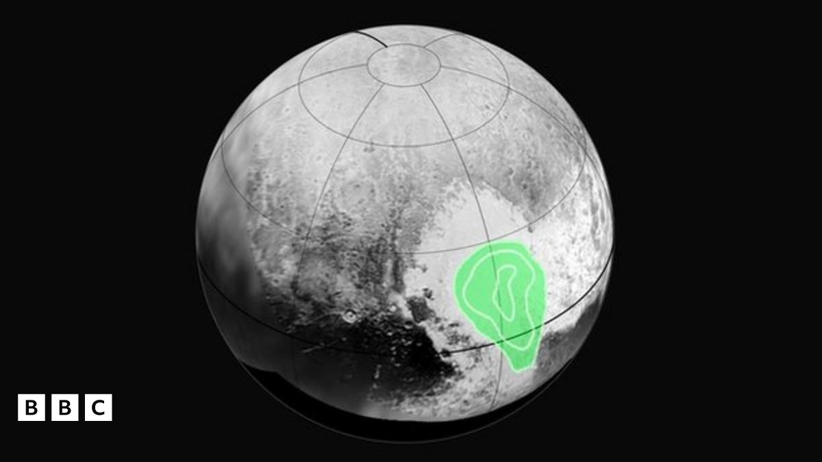 One side of the heart is smoother than the other, and researchers believe the crater is filled with frozen gases from the atmosphere, including nitrogen, methane and carbon dioxide.
