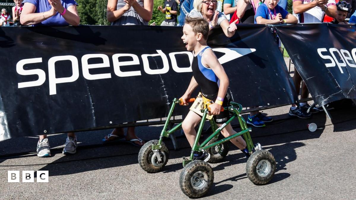 He has cerebral palsy, which is a condition that affects movement and co-ordination but it didn't stop him from taking part and completing the triathlon.