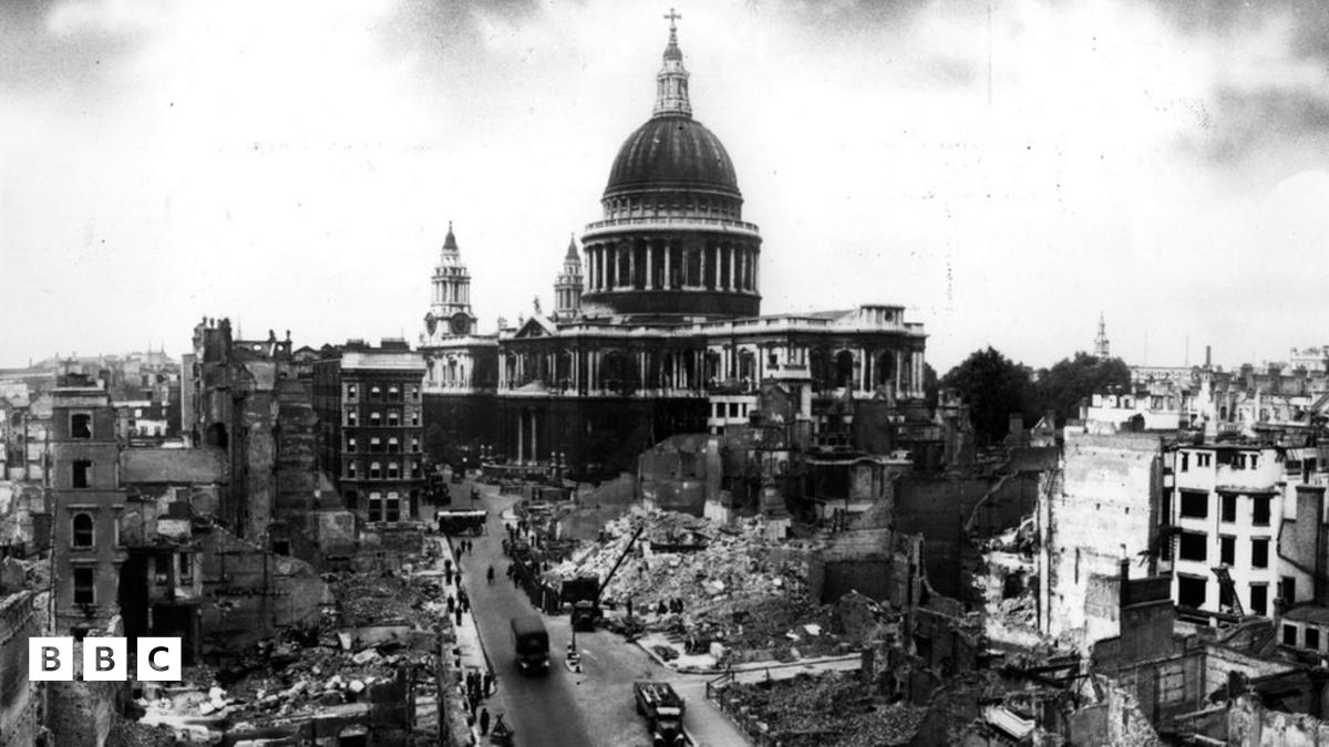 You can see the extent of the bomb damage in the area around St Paul's Cathedral in London.