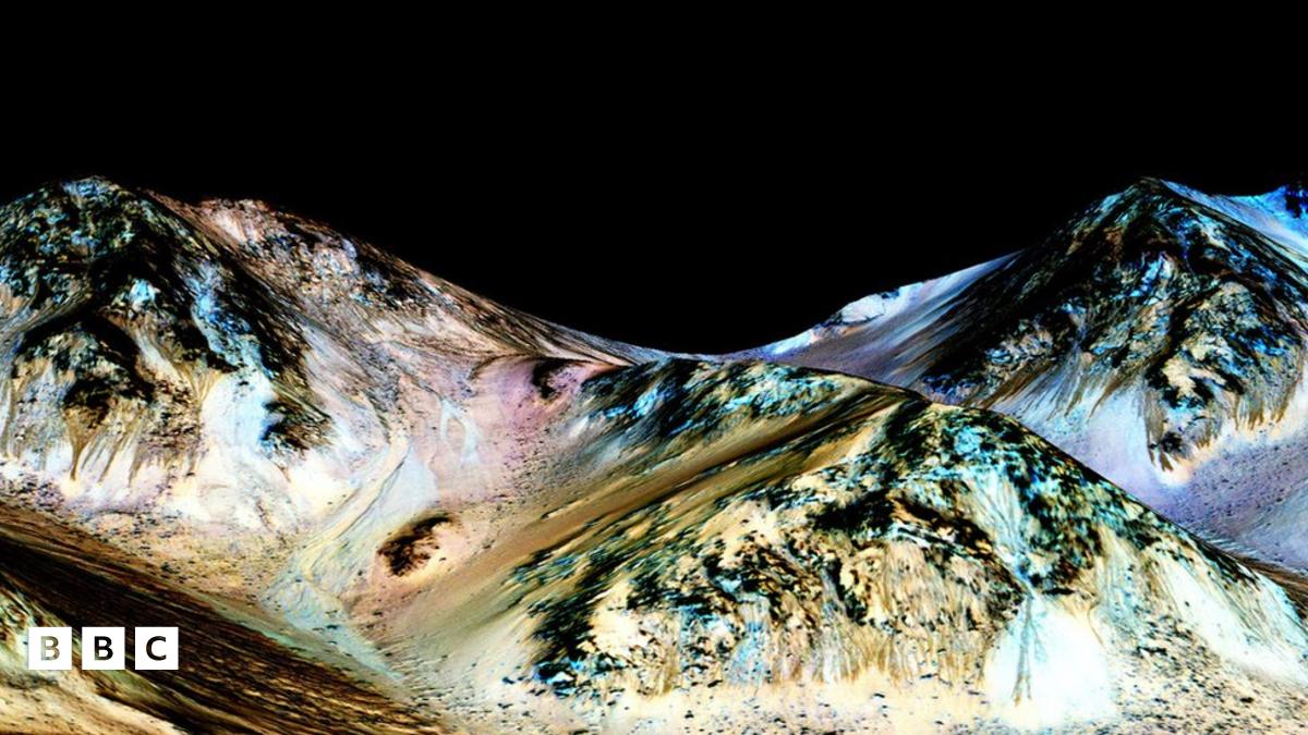 This Nasa picturefrom the Mars Reconnaissance Orbiter shows dark, narrow streaks on the slopes of Hale Crater. They say they're formed by seasonal flow of water on surface of the red planet.