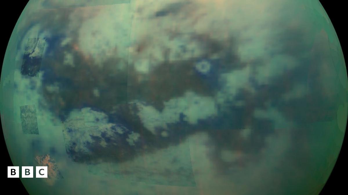 It was taken by Nasa's Cassini spacecraft, and is made up of lots of different photos of Titan.