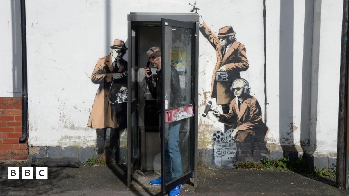 Banksy's painting is called 'Spy Booth', and shows three spies snooping at a phone box. The house with the Banksy artwork has been targeted by thieves and damaged several times.