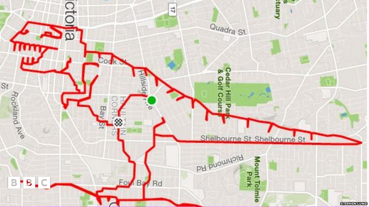 A Canadian cyclist has turned doodling into a sport, by riding thousands of miles to make pictures on his GPS tracker.