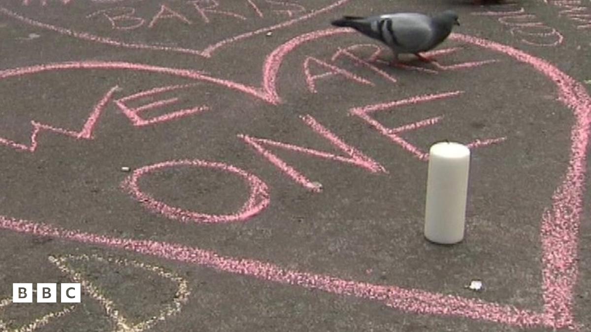 As well as the chalk messages, which are written in many different languages of the world, flags have been displayed and flowers left.