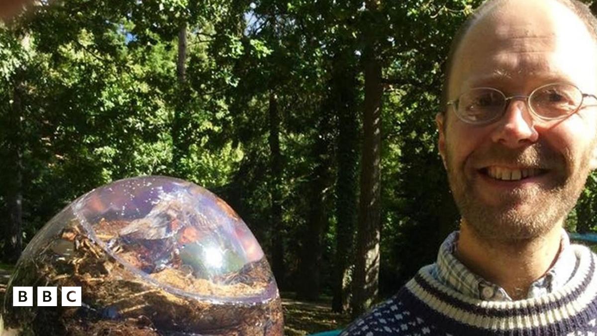 The museum's organiser Daniel Roberts holding a lion's poo.