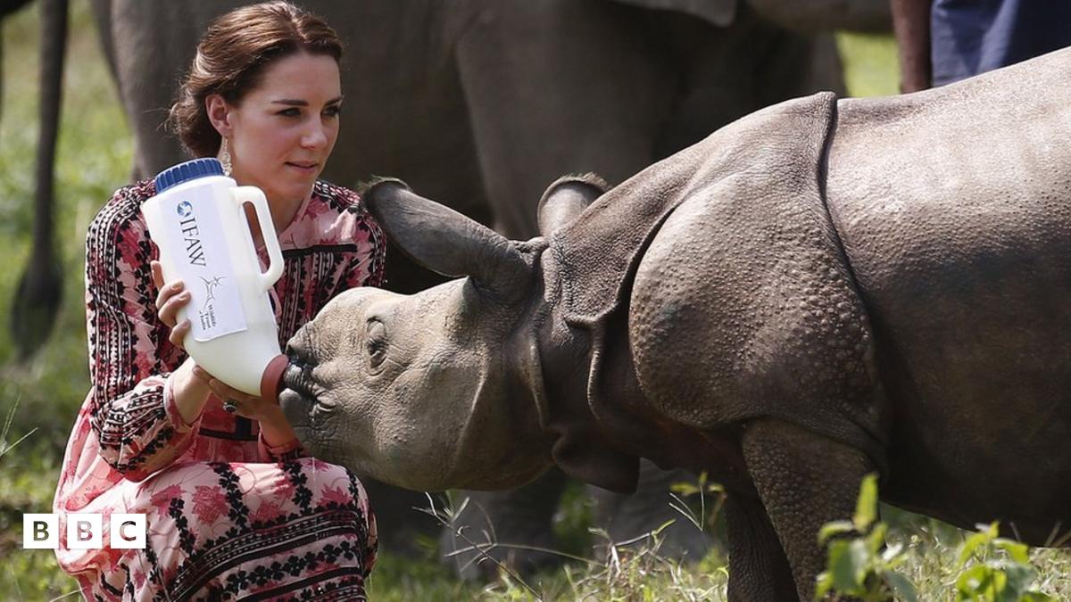 The Duchess of Cambridge took the chance to feed a cute baby rhino at a Conservation centre in Kaziranga, in India. The park is home to the world's largest population of rare One-horned Rhinos