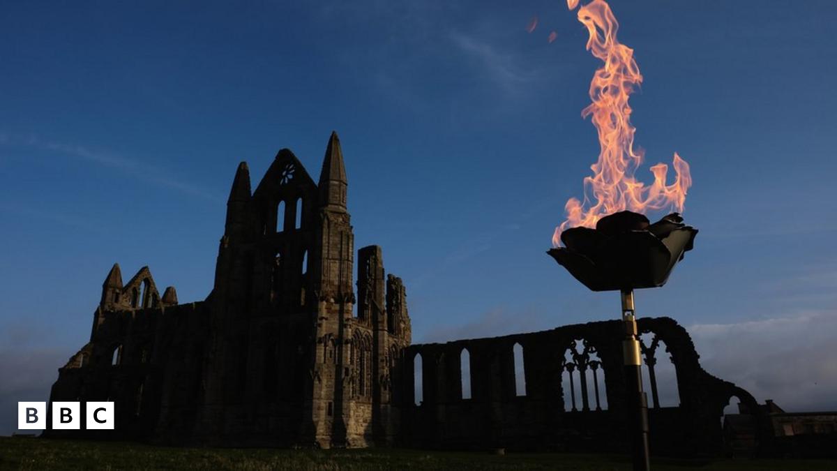 Beacons were lit across the whole country, including here at Whitby Abbey in North Yorkshire.
