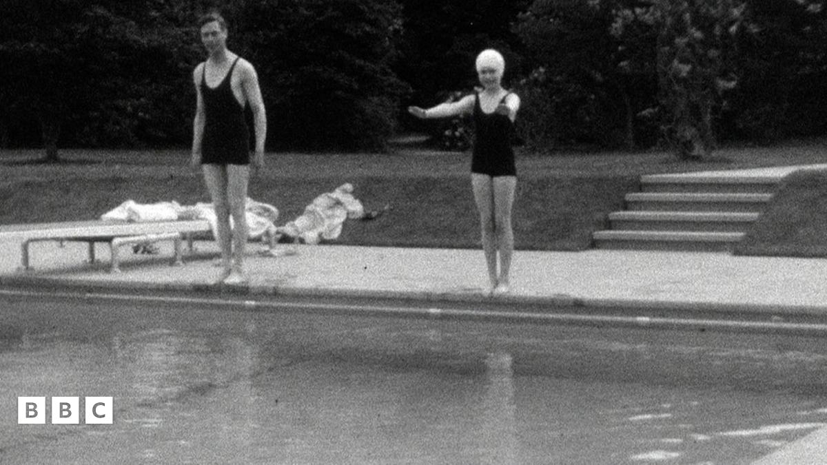 In one of the images, she's seen just about to dive into a pool with her father, King George VI.