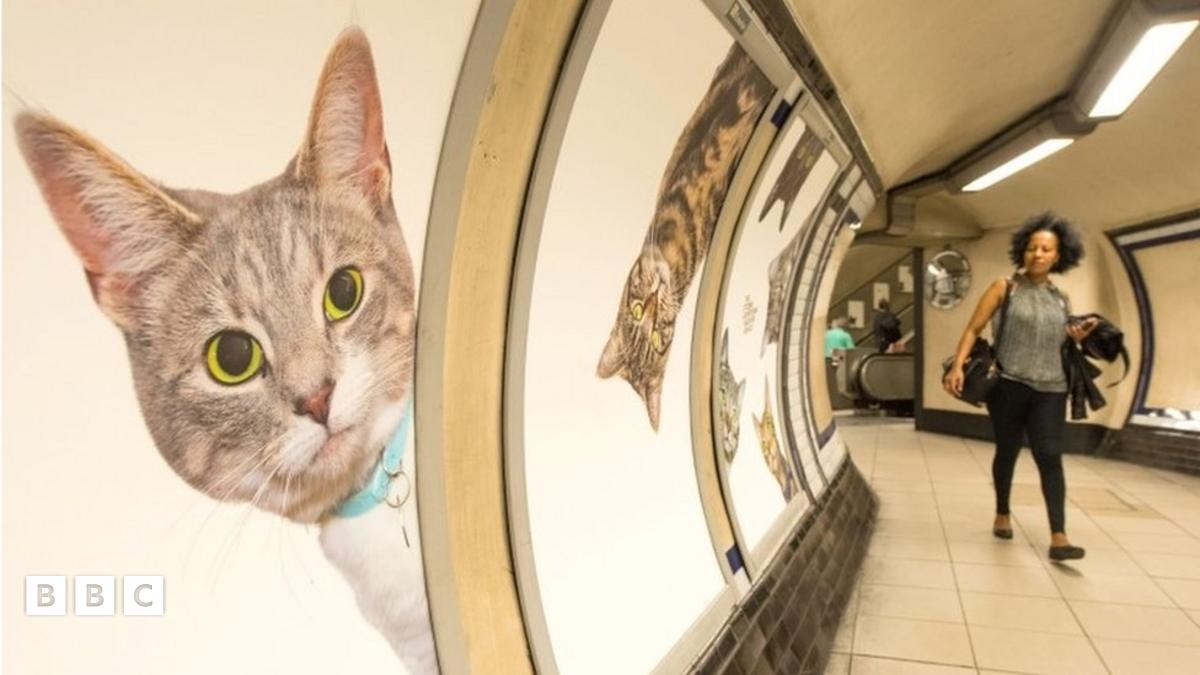 Giant cat posters take over London underground station