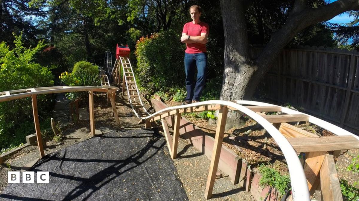 This rollercoaster is in Lyle Pemble's backyard. He helped his dad design and build it in 2014. The ride is nearly 200 feet long and took about six weeks to build.