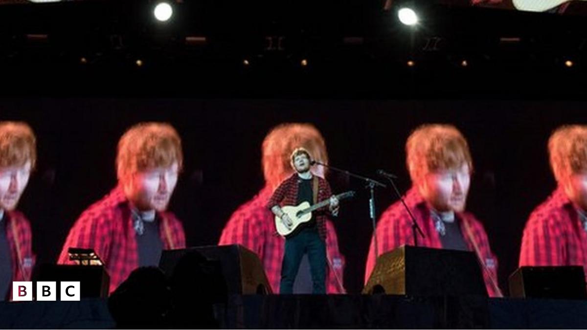 Ed Sheeran performs on Glastonbury's main stage - the Pyramid Stage - on Sunday night. He was the last person to appear on there at this year's festival.