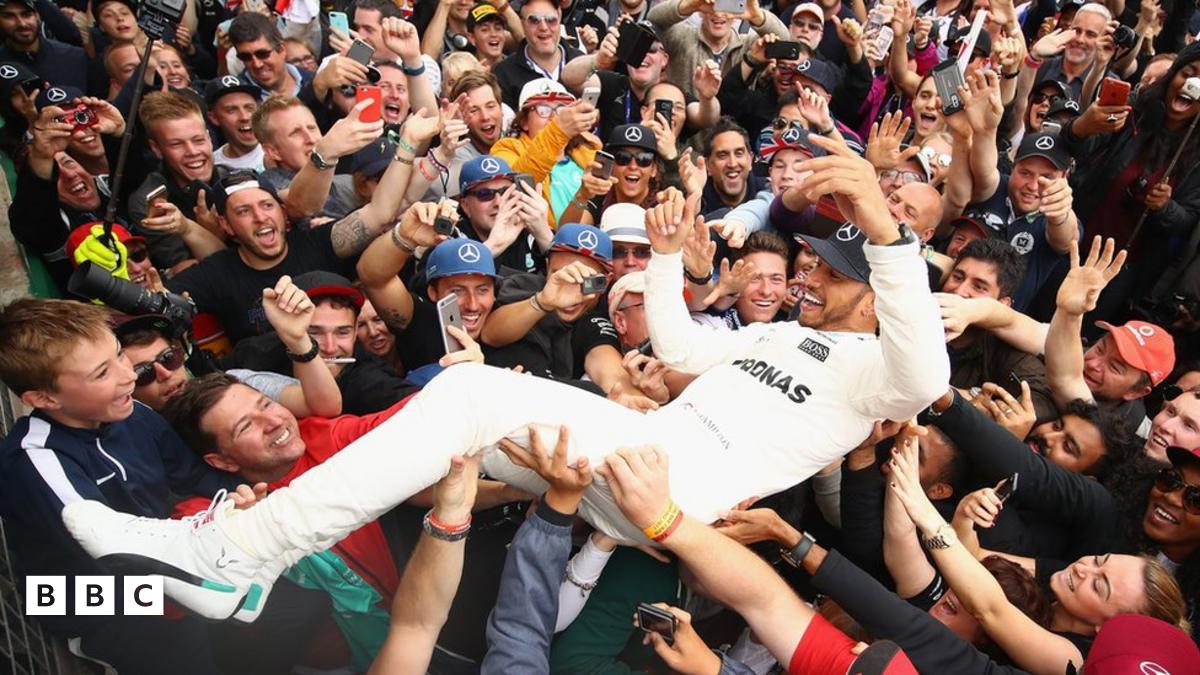 Hamilton celebrated with his fans, who took him crowd-surfing across the track