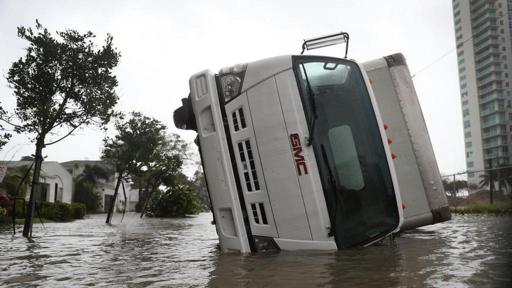 Huge areas in Florida are without power, and parts of the city of Miami are under water.