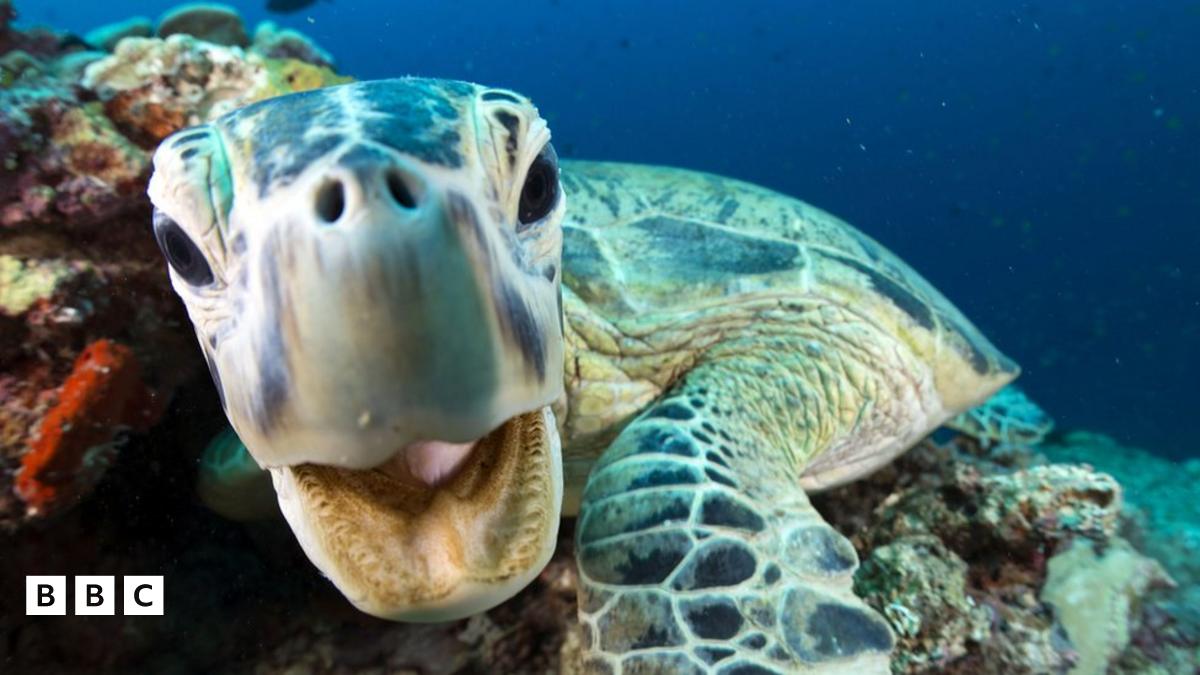 This cheeky green turtle in Sipadan in Borneo is certainly ready for his close-up! They are named after the colour of their skin and shell.
