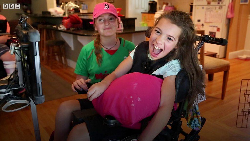 Best friends Meave and Delaney were born with a condition called Cerebral Palsy, which means that they talk through a computer which has a robot-like voice.