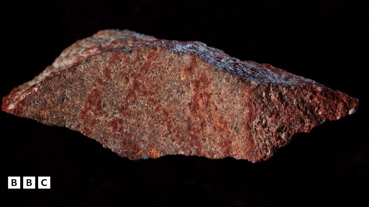These red lines look a bit like an ancient hashtag. Found on a stone in a South African cave, the drawing is 75,000 years old and is thought to be the earliest known drawing by humans.