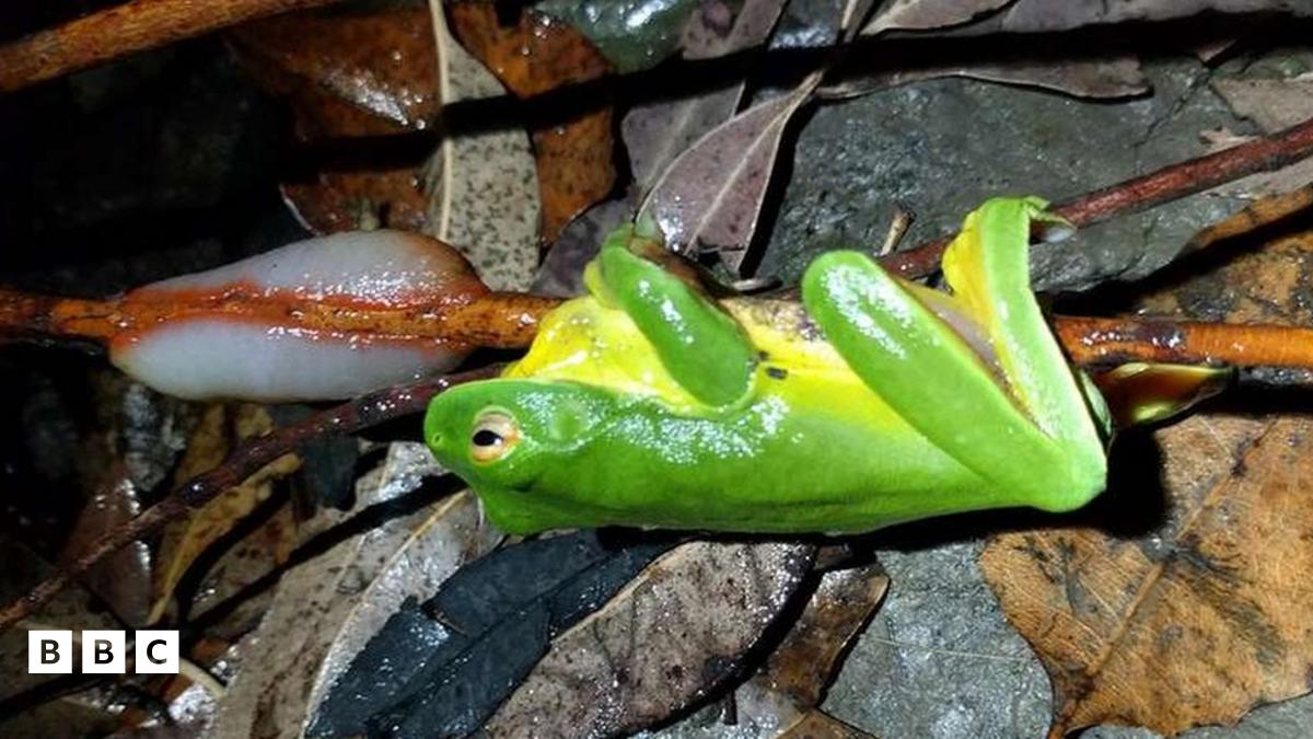 The latest discovery comes from Australia where biologist John Gould spotted a frog stuck to a tree when out for a hike.