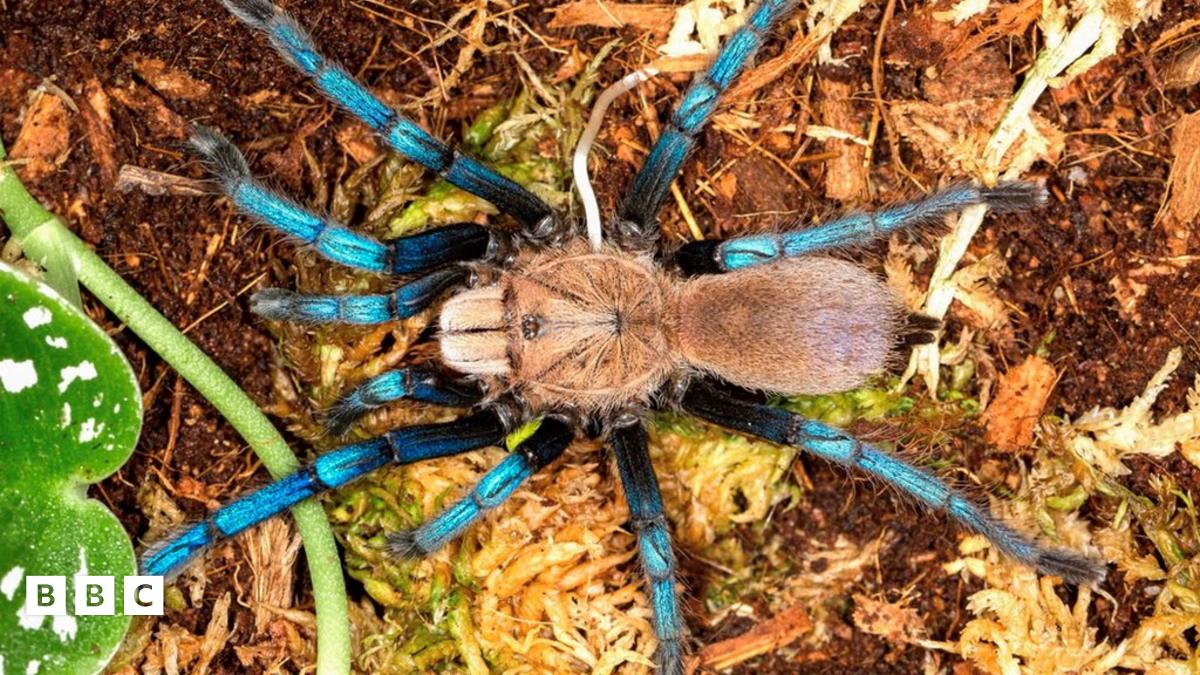 The blue legged tarantula, known as Birupes simoroxigorum, has been spotted in Borneo and is said to enjoy burrowing when it's not wowing photographers.
