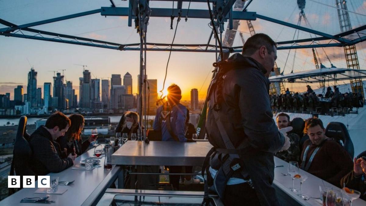 "London in the Sky" is a 22-seater table which is suspended 100 feet in the air above London's O2 arena - that's 30m up in the air!