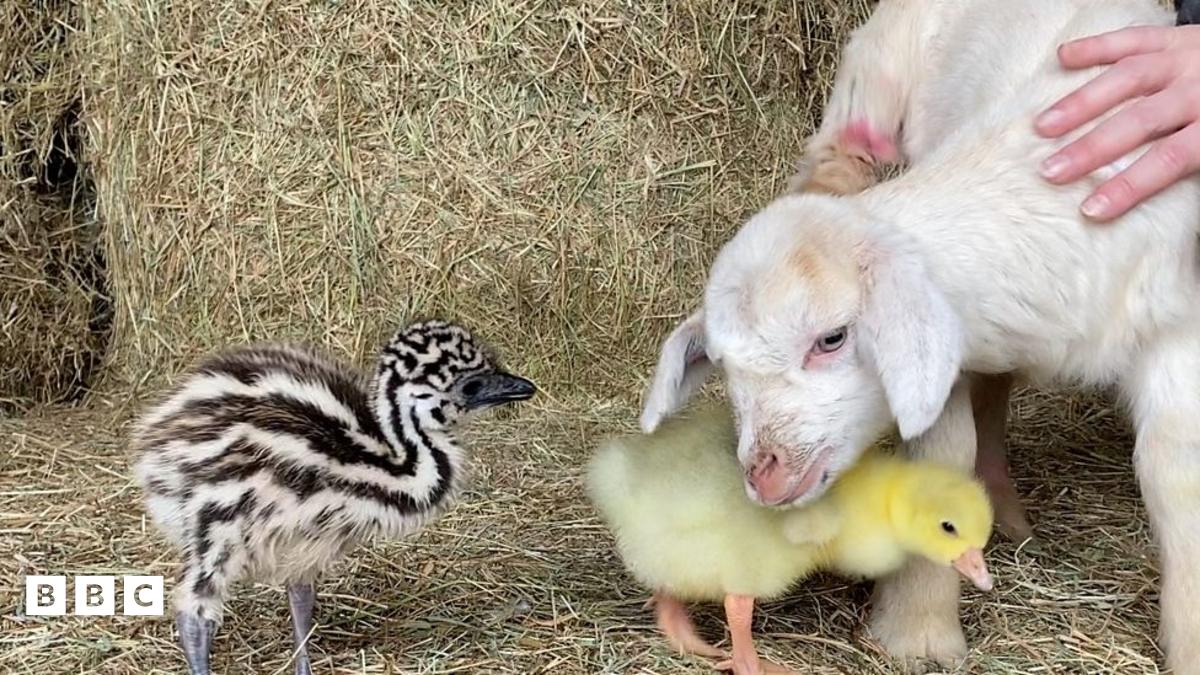 Wiggle, the Sebastopol goose chick, Taz the emu chick and Alfred the kid goat have become the best of friends at Caenhill Countryside Centre in Wiltshire.